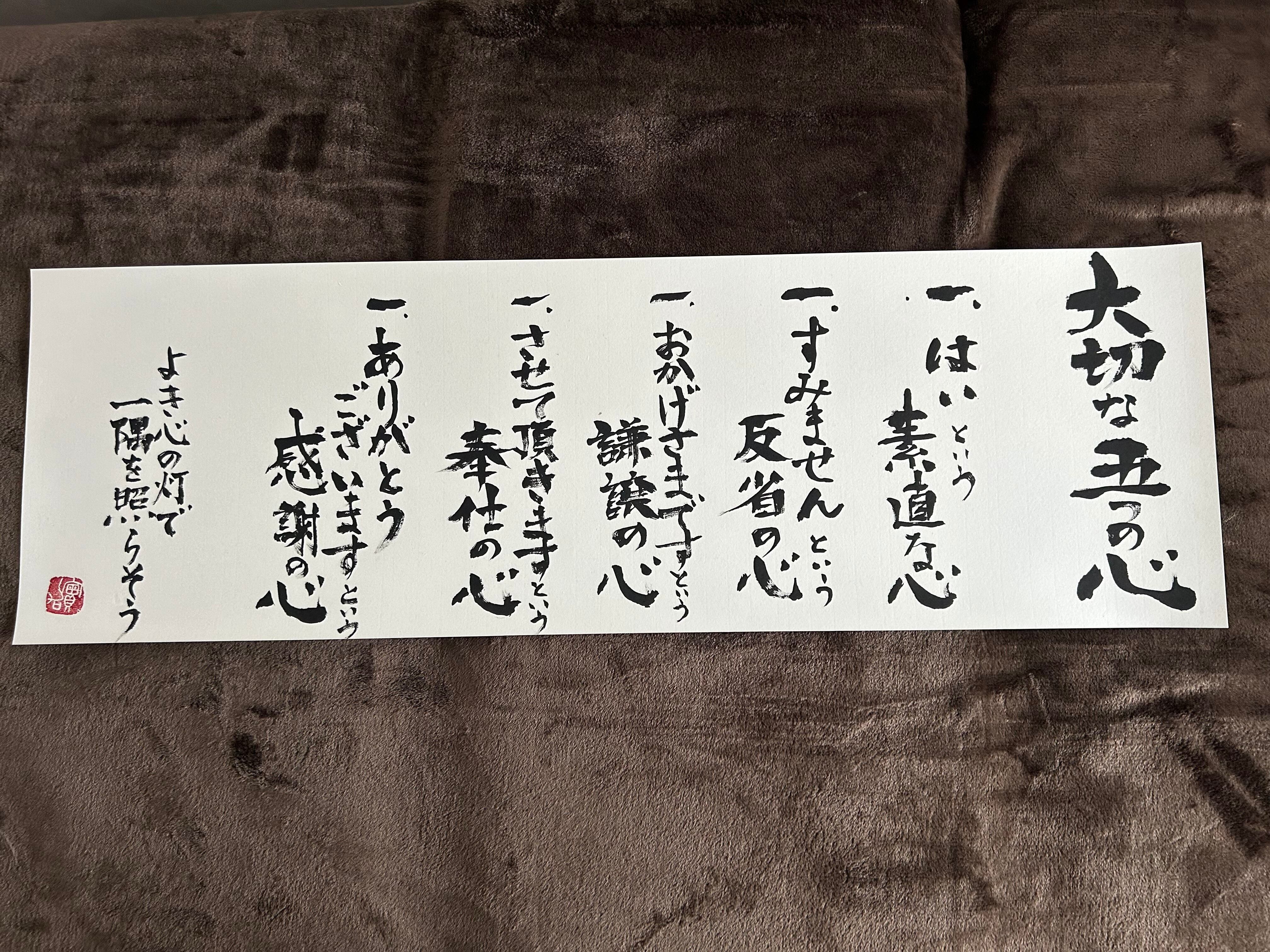 書道作品 「大切な五つの心」No.1
